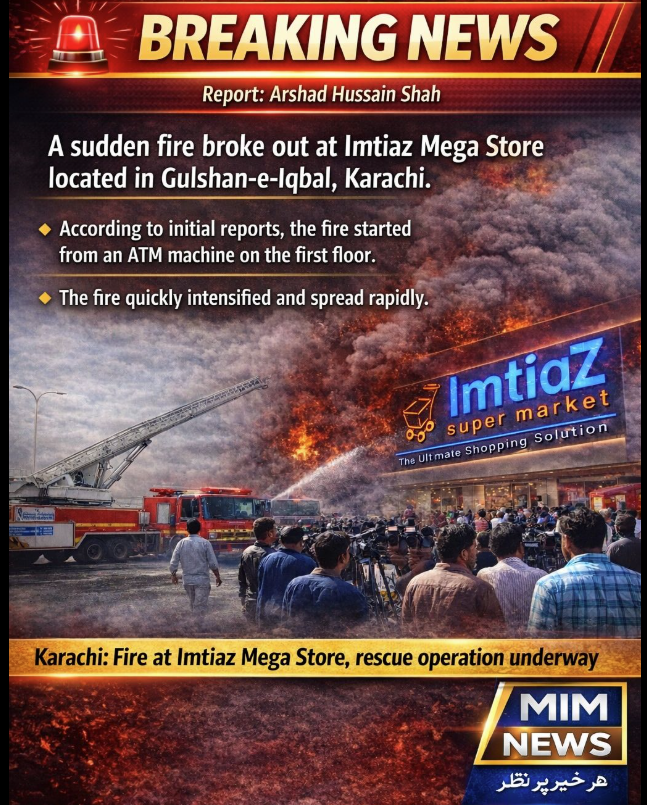 کراچی کے علاقے گلشنِ اقبال میں واقع امتیاز میگا اسٹور میں اچانک آگ لگنے کا افسوسناک واقعہ پیش آیا، جس کے باعث علاقے میں خوف و ہراس پھیل گیا۔